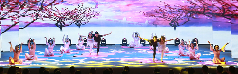 伴随着涤荡心灵的唯美音乐,“武水丽人”向现场观众展示着最美好的自己。一呼一吸,宁静优雅,端庄细腻;举手投足,行云流水,柔软曼妙,将女性之美发挥到了极致。精彩的表演将现场观众带入到一种妙不可言的秘境之中……不同风格的瑜伽体式展示,与美轮美奂的舞台背景完美融合,给现场的众多瑜伽爱好者带来了一种全新的感官体验,共同经历了一场心灵的洗礼。