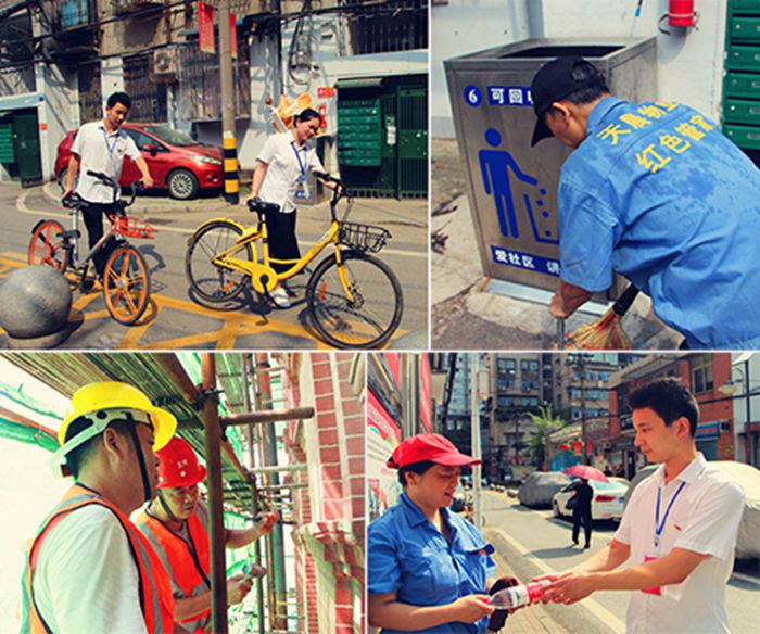 高温酷暑不止会给人的身体带来不适,对于老旧房屋也会造成隐患,7月17日上午,室外气温36度,暴晒下的屋面平顶,热浪扑面而来。身为房屋“维保医生”的房产集团一分公司维修班师傅们蹲在滚烫的屋面上进行治漏工作。房产集团各单位的工人们在社区疏通作业、在机房检修设备、在社区清扫、在胜利街优保建筑进行立面修缮、在工地周围进行围挡整理及道路清理......