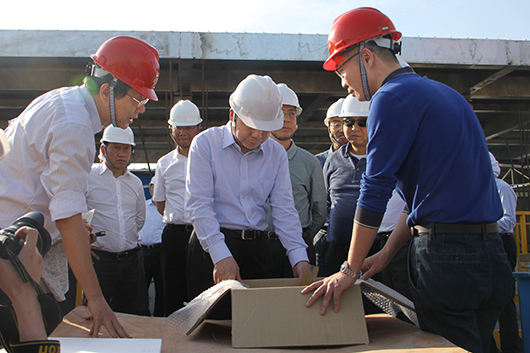 在建的最大排水泵站,为了确保汛期前建成启用,各参建单位的建设者节日期间坚守在施工一线,昼夜轮班施工。在施工现场,万勇与工人亲切握手问好,他对工人们说,劳动光荣,你们在这么短的时间内建设这样一个的大型泵站,应该感到光荣。他代表市委、市政府向在场的建设者表示感谢。在泵站和出江工程现场,万勇仔细检查施工质量,查看施工进度,了解下步泵站管理等情况。同时,对工程遇到的问题现场进行了协调。当看到施工现场堆放着大量的工程设备、材料时,他要求一定要实行施工现场封闭管理,消除安全隐患。他强调,江南泵站工程建设已进入最后的总攻阶段,越是关键时候,越要科学组织、系统化管理。他要求各参建单位一起努力,在保证安全和质量的前提下,确保5月底工程如期完工。