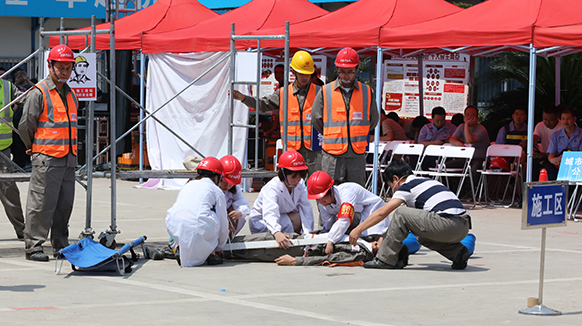 为进一步做好安全生产应急预案演练工作,提高安全生产应急管理水平和应急救援能力。6月15日上午,由市安监局、市城投集团主办、桥建集团承办的2018年应急演练竞赛活动,在珞狮南路改造及配套工程项目现场举行。市城投集团所属燃气集团、水务集团、桥建集团、房产集团、道桥公司、新城国博、新区公司、铁投公司、城市运营公司共9家二级单位,分别针对燃气管网泄漏、水厂氯气泄漏、在建工程基坑坍塌、老旧公房开裂、大型展会反恐、猫道作业、高处坠落、防汛、桥梁突发事件等方面,结合各自特点进行了现场模拟竞演。演练结束后,专家评审组对各代表队的演练情况进行了集中点评,并提出了改进完善建议。
