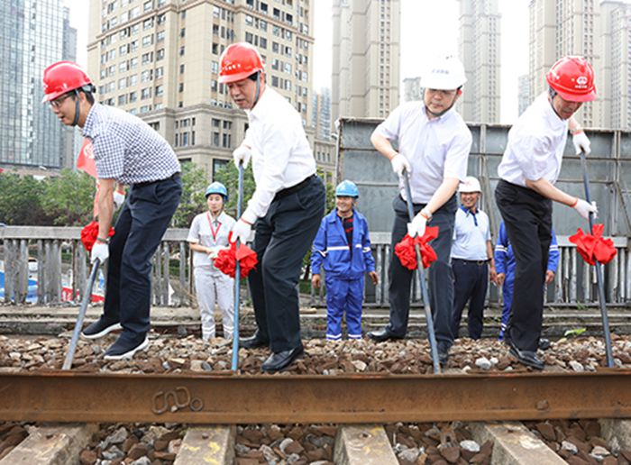 金国发一行在集团公司副总经理、铁投公司董事长汪国圣等的陪同下,先后前往和平大道三角路铁路桥、综合管廊施工现场进行了调研踏勘,并与武汉局集团公司及相关建设单位负责人,共同撬动拆除了武九铁路北环线第一根铁轨,标志着武九铁路北环线拆除工作正式启动。随后,金国发一行到铁投公司召开调研会议。