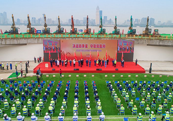 9月25日上午,市总工会“决战四季度、夺取双胜利”武汉百万职工作贡献劳动竞赛誓师大会,在集团公司所属铁投公司承建的月亮湾城市阳台(一期)工程项目现场举行。省总工会党组书记、常务副主席董永祥,市委常委、市总工会主席张世华,以及全市190家系统、行业、单位近800名职工参加大会。大会由市总工会党组书记、常务副主席王芳主持。集团公司党委副书记、总经理、副董事长李兵,工会主席江强生,副总经理汪国圣受邀参加会议。