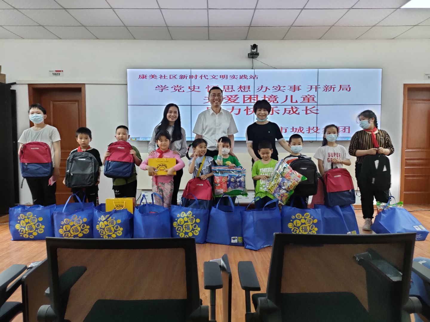 为贯彻落实“学党史、悟思想、办实事、开新局”要求,将党史学习教育成果转化为工作实效,切实为群众办实事、解难题、谋幸福,在“六・一”儿童节来临之际,受集团公司党委委托,机关党委书记魏晓波带队赴对口共建康美社区,对辖区10户困难家庭儿童进行了慰问。