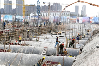 武汉市城投公司介绍,在桩基施工冲刺阶段,高峰时期创纪录地同时投入43台各类机械;土方开挖阶段,投入反铲、自卸车达120台。真正做到了“人员轮班,机器不停”24小时连续作业。