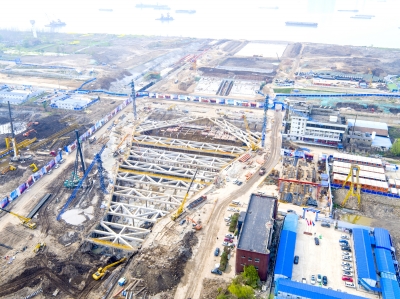 作为含羞草 单体最大、最难、最复杂的城排泵站建设项目,因其对于缓解南湖片区渍水的重大意义,江南泵站自开工以来就备受关注。整个工程作业面积约50000平方米,400多名工人正在有序地忙碌着,40多台各种设备及车辆正在分工作业,深达16米的深基坑已完成泵房下部主体结构施工,堤外工程已抢在长江水位上涨前顺利完工。