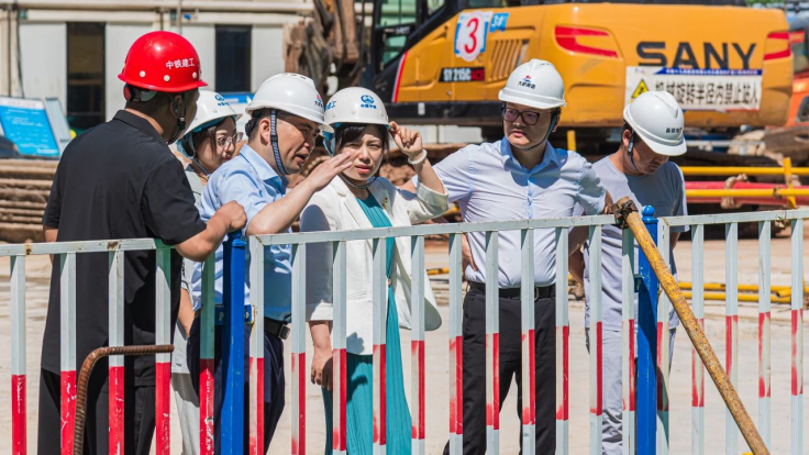张冯茜一行实地查看了项目现场基坑、物资库房以及营销中心等重点部位,仔细询问了防汛物资储备、防汛应急队伍组建、防汛应急演练等工作的开展情况,重点听取了大桥集团公司关于防汛排渍重点部位危险源分析、近期防涝排渍工作部署落实情况以及下一步工作措施。