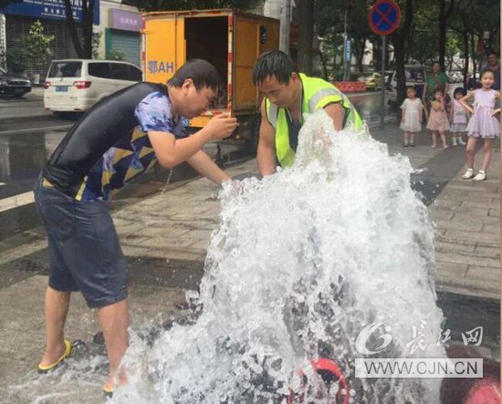 8月3日正午12:35,武昌供水部武昌管线所接热线信息称,尚隆地球村小区门前消火栓被车辆撞断。当抢修人员徐金奎迅速到现场时,被撞断的消火栓已脱离地面,水柱喷射高达3米,形成球面冲顶。