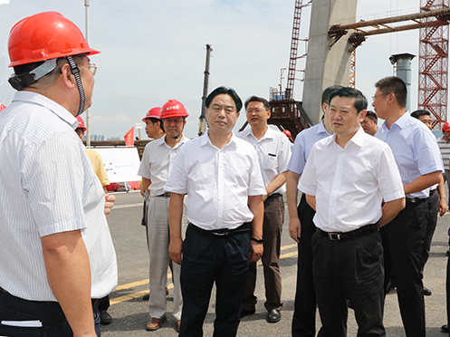 7月10日下午,副市长汪祥旺一行在市城投公司董事长金国发的陪同下,调研了由市城投公司负责建设的汉江大道月湖桥段工程,看望慰问了高温天气下奋战在重点工程建设一线的参建单位干部职工。市城投公司副总经理林驰汇报了工程建设情况和项目征地拆迁的相关情况、问题。 市政府副秘书长彭涛及市政府相关部门、相关区领导,公司项目管理部、道桥公司、新区公司、飞虹监理公司、湖北路桥等相关部门、参建单位负责人参加了调研活动。