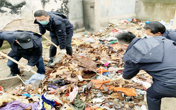 讲座结束后,参加活动的党员同志们前往居民小区,和社区工作人员一道开展清洁家园行动,对堆积的装修垃圾、生活垃圾、废旧家具、枯枝落叶等进行集中清理,大家积极主动、干劲十足,历时2个小时彻底清理了小区的卫生死角,清除了积存的大量垃圾。