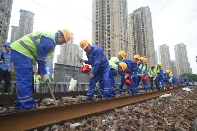 5月24日上午9时,武九铁路北环线三层楼铁路立交桥钢轨开始进行切割拆除。